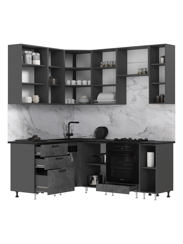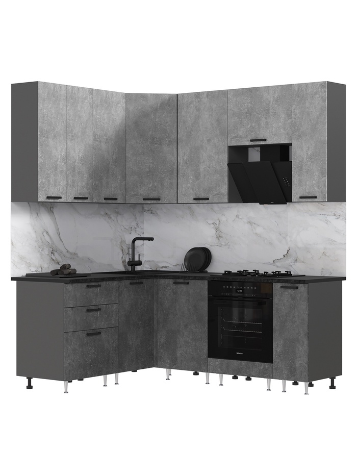 Кухонный гарнитур угловой «Рио» New, 1600×2000 мм, цвет бетон свет/бетон тёмный/графит/кастилло — Характеристики