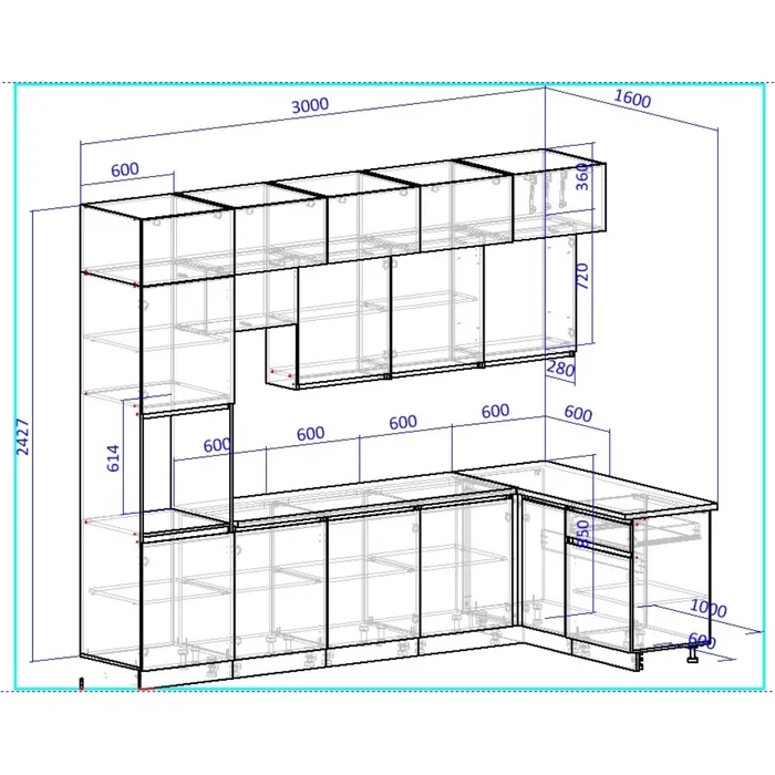Размер кухни: 3000 х 1600