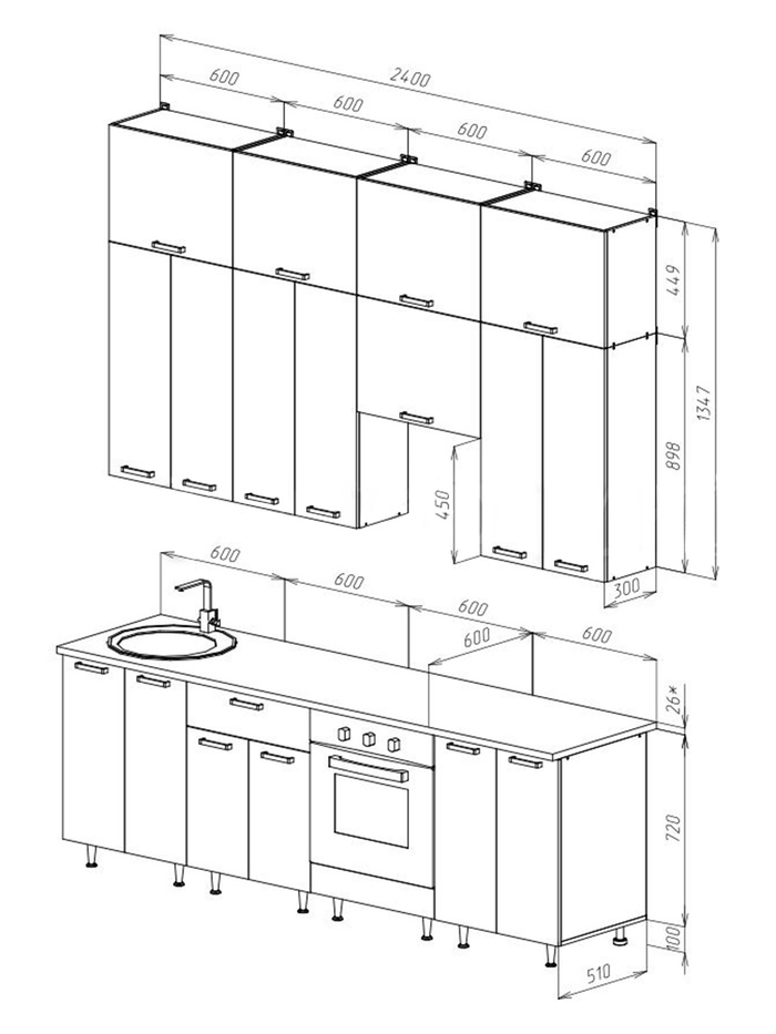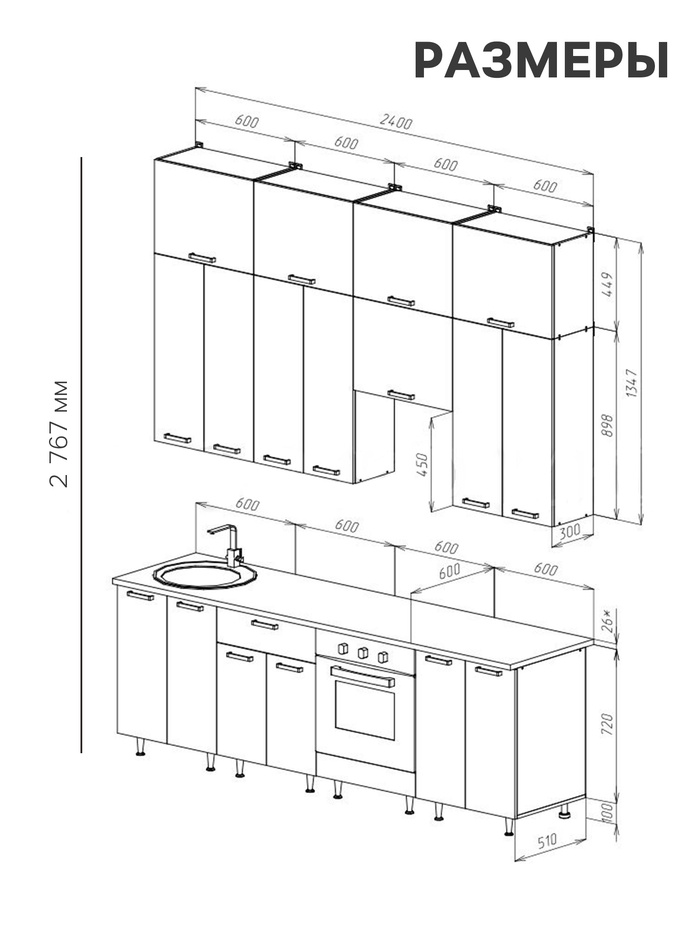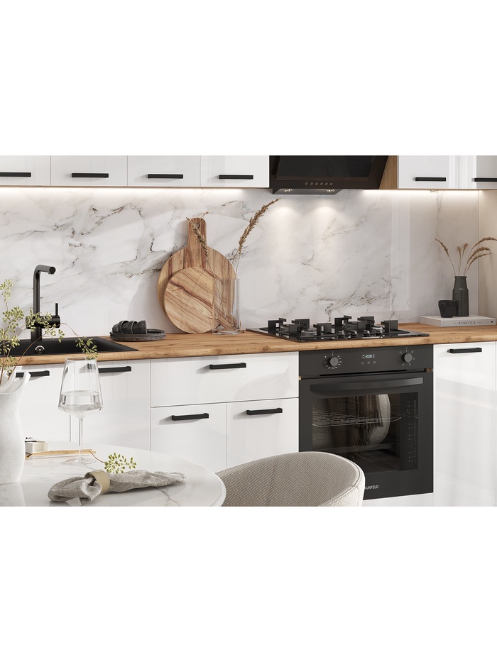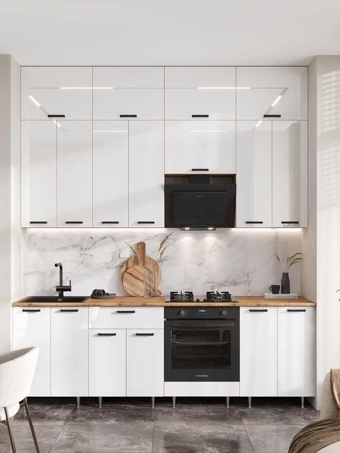 Набор мебели, предназначенный для обустройства кухни. Создан с учётом основных потребностей к кухонной мебели. Гарнитур обеспечивает утилитарность кухни, позволяя хранить продукты, посуду и кухонные принадлежности по местам, организует рабочее пространство для приготовления пищи. Поможет поддерживать порядок на кухне и делает процесс приготовления еды более комфортным и приятным.