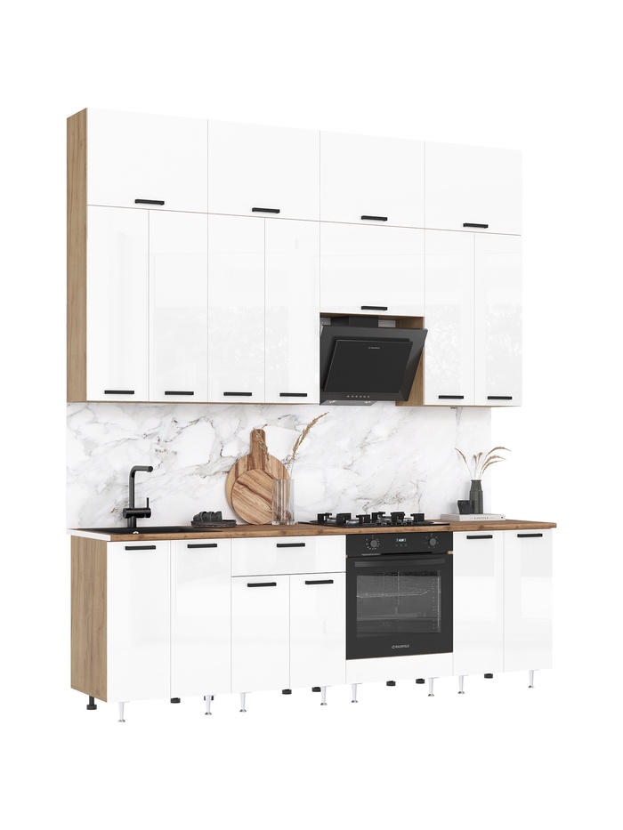 Кухонный гарнитур в потолок «Рио №3», 2400 мм, цвет белый глянец/дуб крафт/дуб вотан — Характеристики