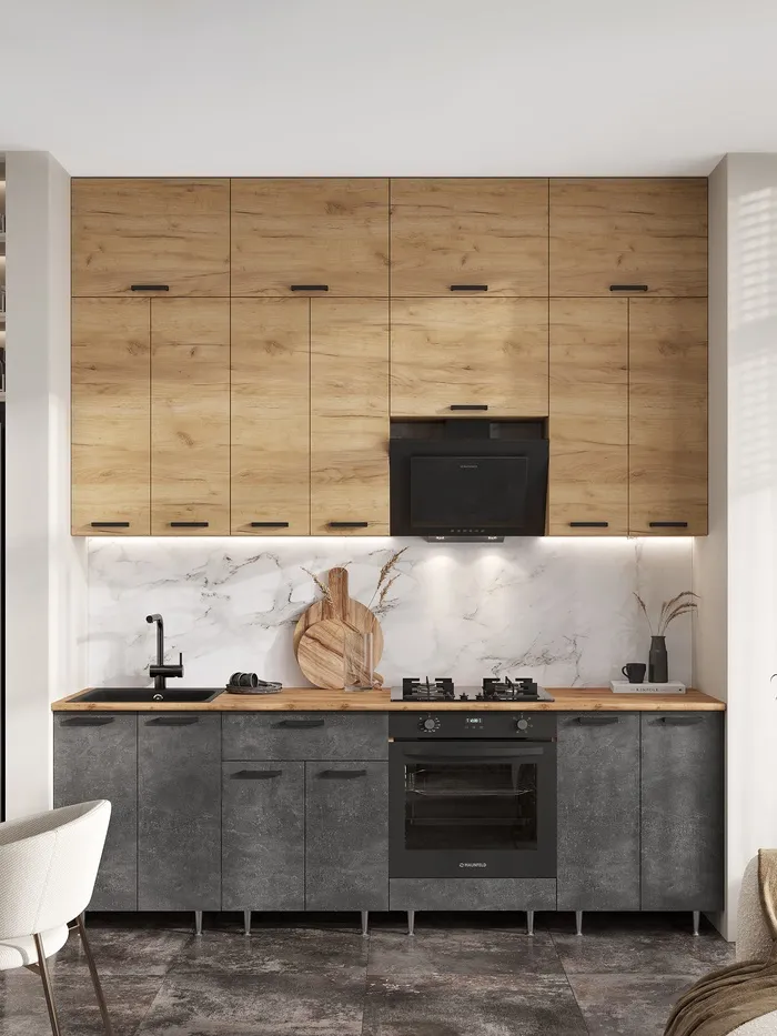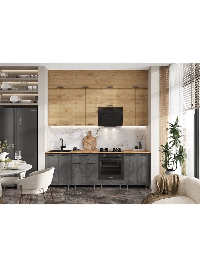 Кухонный гарнитур в потолок «Рио №3», 2400 мм, цвет дуб крафт/бетон тёмный/дуб крафт/дуб вотан — Характеристики