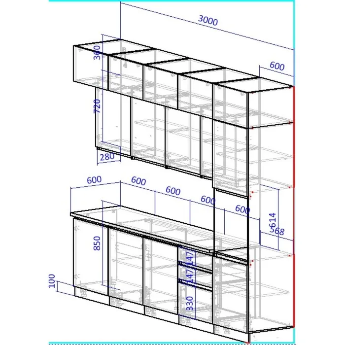 В комплекте вся необходимая фурнитура для сборки кухонного гарнитура.