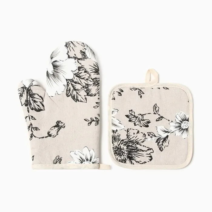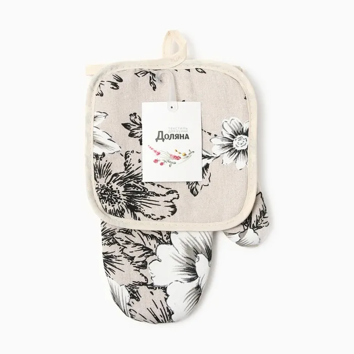 Кухонный набор 2 пр. Доляна "Цветы" прихватка 17*17см, Варежка-прихватка 26*16см,100%хл — Характеристики