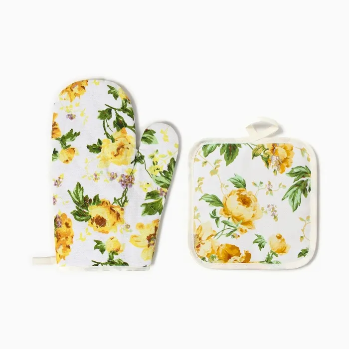 Кухонный набор 2 пр. Доляна Цветы желт. прихватка 17*17см, Варежка-прихватка 26*16см,100%хл — Характеристики