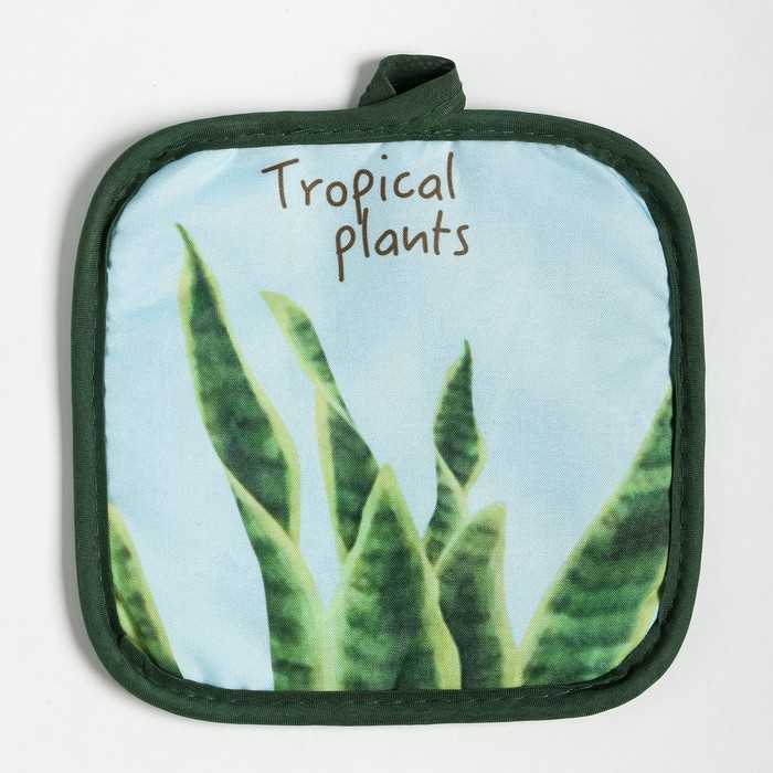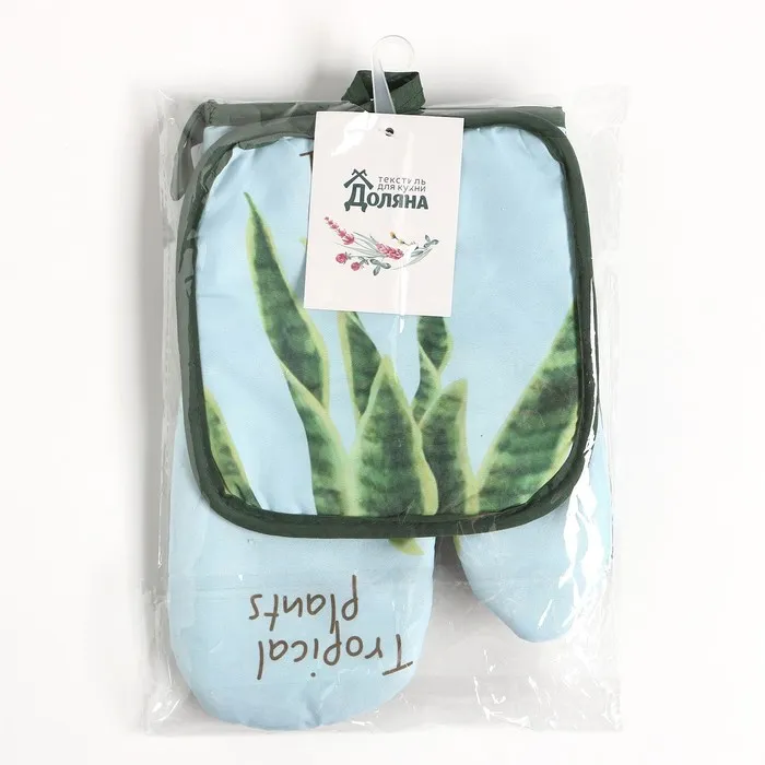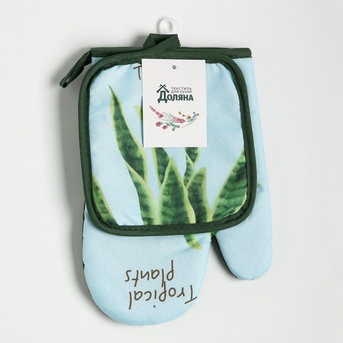 Кухонный набор 2 предмета Доляна "Tropical" цвет голубой: прихватка 17х17 см, варежка 25х16 см, 100% п/э — Характеристики