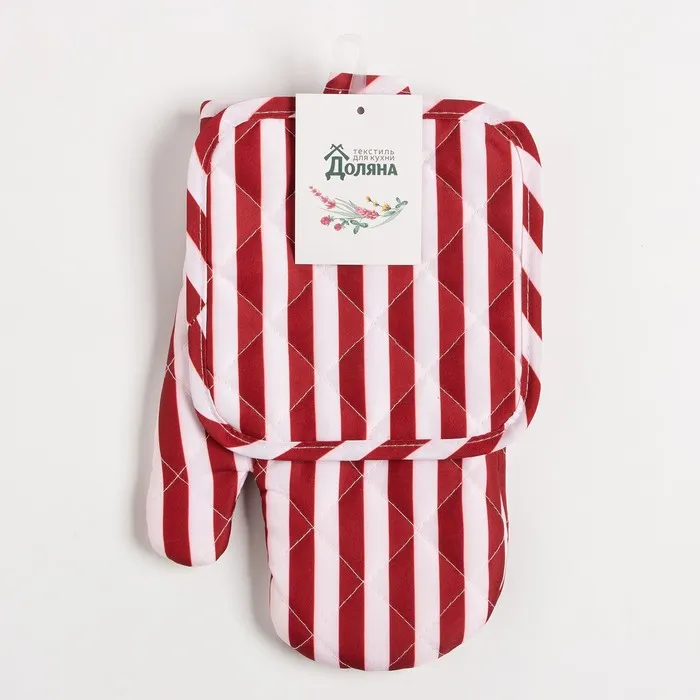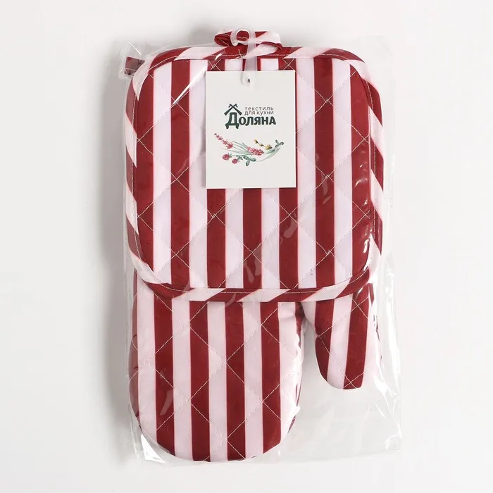 Кухонный набор 2 предмета Доляна цвет бордовый прихватка 17х17 см, варежка 26х16 см, 100% п/э — Характеристики