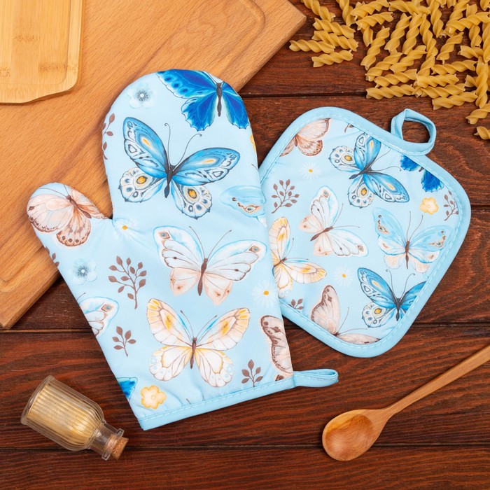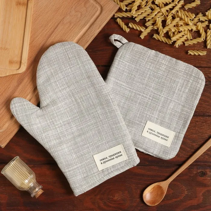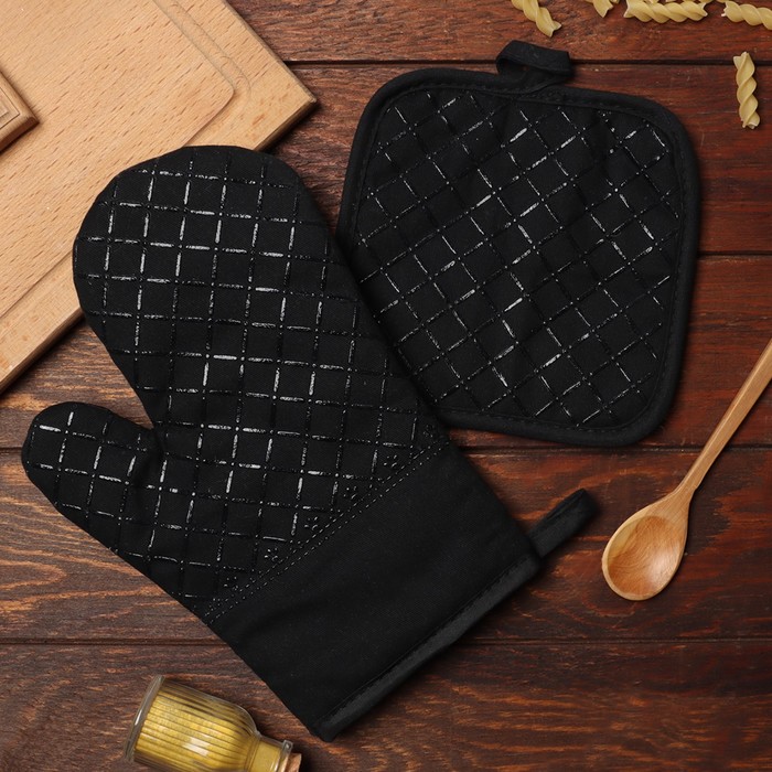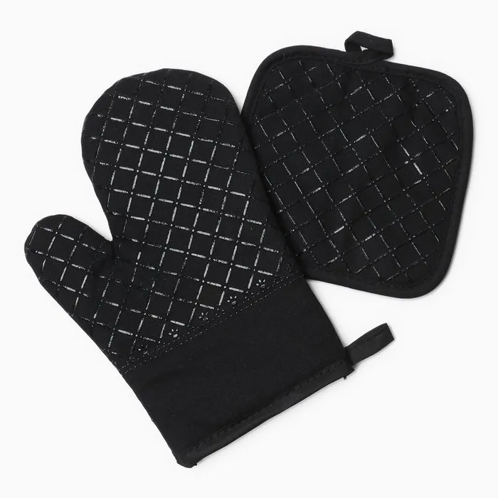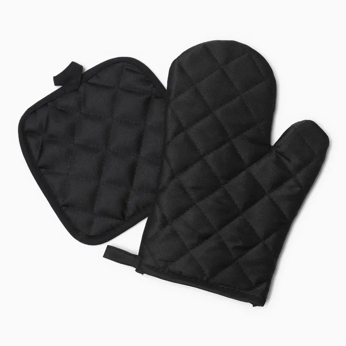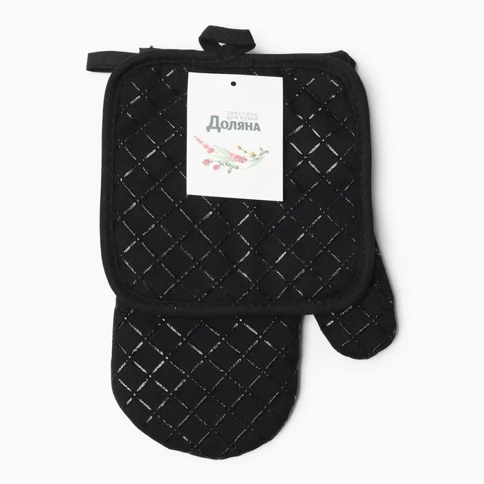Кухонный набор 2 предмета Доляна цвет черный, прихватка 17*17 см, варежка 26*16 см,100% п/э — Характеристики
