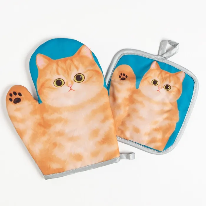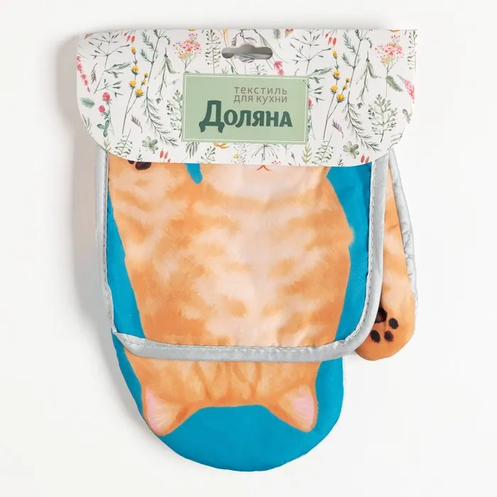 Кухонный набор 2 прихватки Доляна Котики «Мурка» , прихватка 17х17 см, варежка 24х18 см, 100% п/э — Характеристики