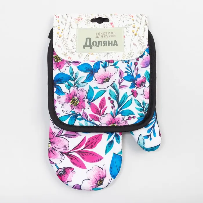 Кухонный набор 2 прихватки Доляна «Нежность» , прихватка 17х17 см, варежка 24х18 см, 100% п/э — Характеристики