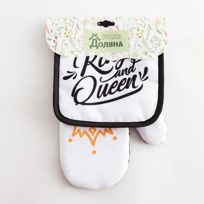 Кухонный набор 2 прихватки Доляна «Queen», прихватка 17х17 см, рукав. 26х16 см — Характеристики