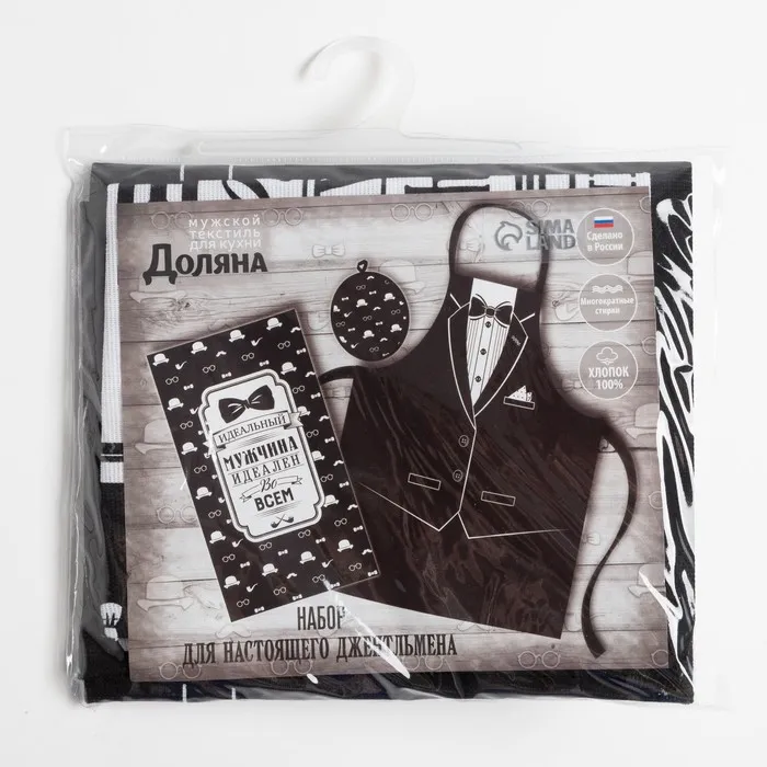 Кухонный набор 3 пр. "Джентльмен", фартук 60х70 см, прихватка 20х20 см, полотенце 35х60 см — Характеристики