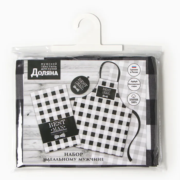 Кухонный набор 3 предмета "Best man black" фартук 70х60 см,, прихватка 20х20 см, полотенце 35х60см — Характеристики