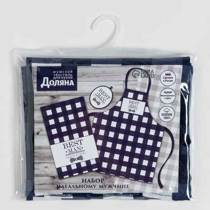 Кухонный набор Best man, 3 предмета: фартук 70х60 см, прихватка 20х20 см, полотенце 35х60см — Характеристики