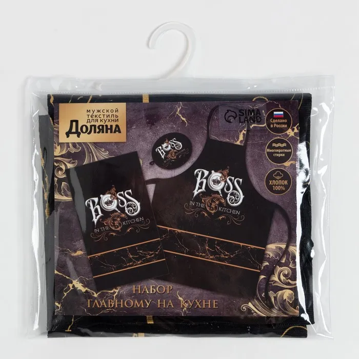Кухонный набор Boss, фартук 70х60 см, прихватка 20х20 см, полотенце 35х60см — Характеристики