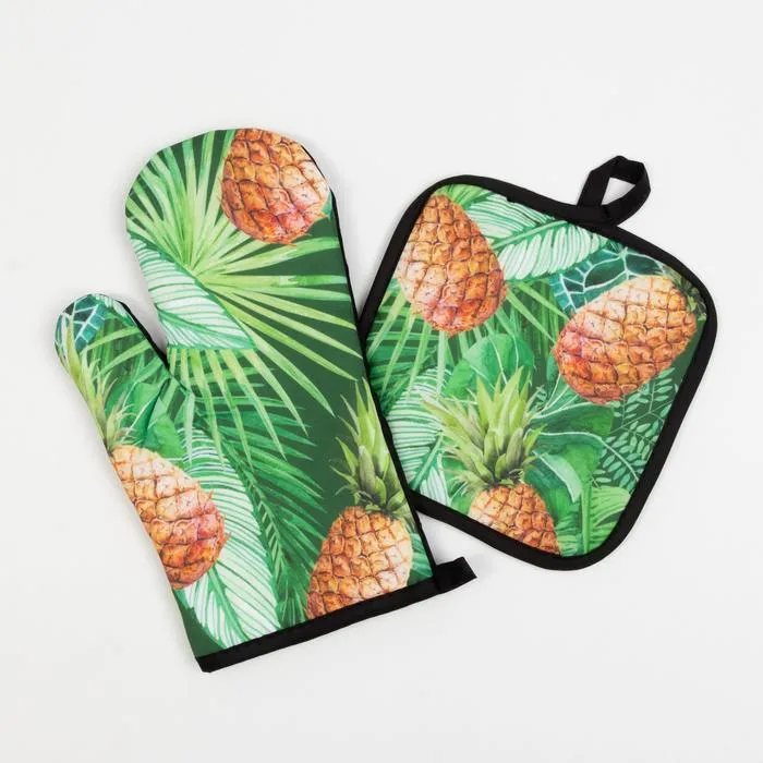 Кухонный набор Доляна «Ананасы» прихватка 17*17 см, варежка-прихватка 26*16 см, 100% п/э — Характеристики