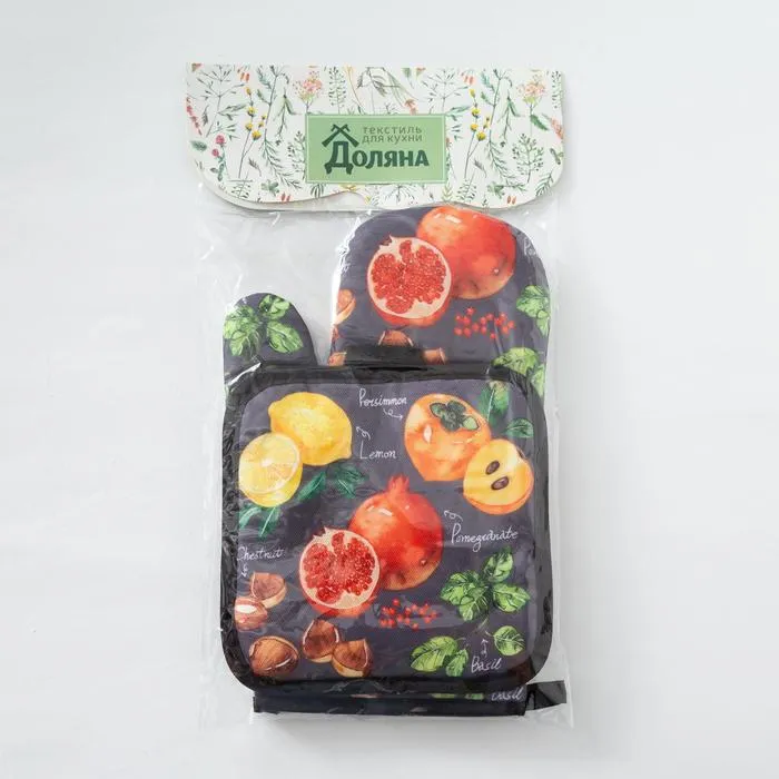Кухонный набор Доляна «Фрукты», прихватка 17х17 см, рукавица 26х16 см — Характеристики
