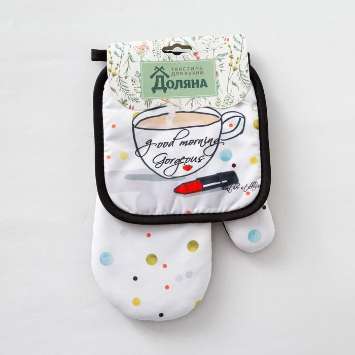 Кухонный набор «Доляна» Good morning: прихватка 17×17 см, рукавица 26×16 см — Характеристики