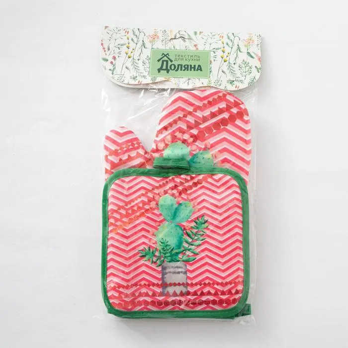 Кухонный набор Доляна «Кактус» прихватка 17х17 см, рукавица 26х16 см — Характеристики