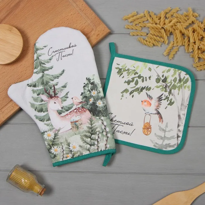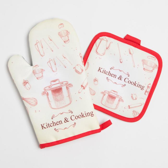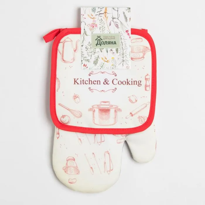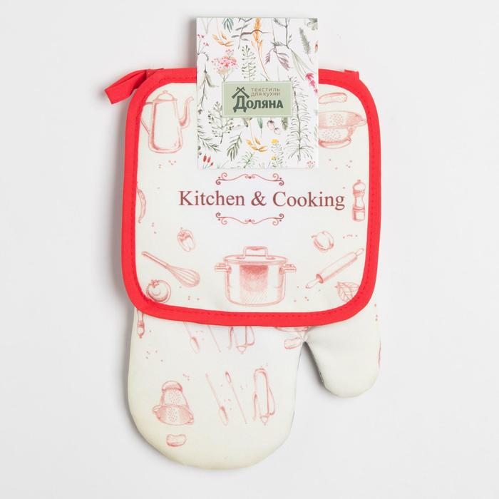 Кухонный набор Доляна Kitchen and cooking, прихватка 17*17 см, рукавица 26*16 см,100% п/э — Характеристики