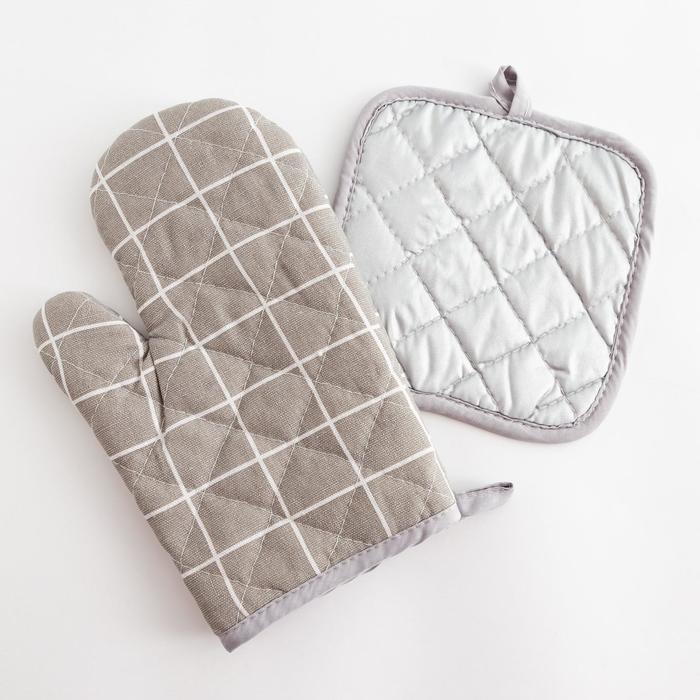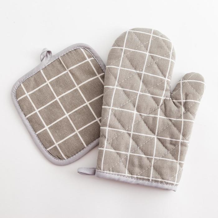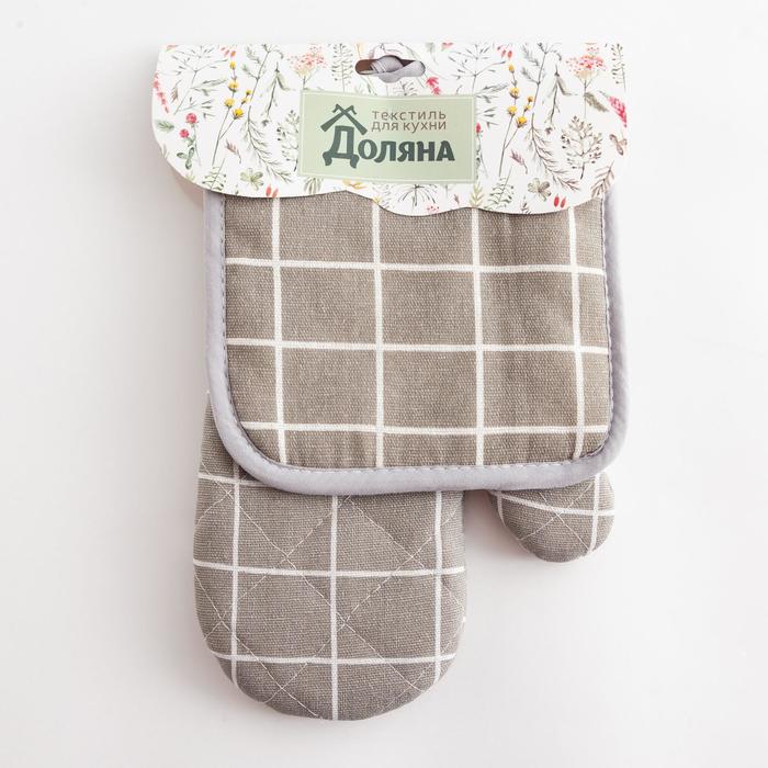 Кухонный набор Доляна «Клетка» цв.серый, прихватка 17*17 см, рукавица 26*16 см,100% п/э — Характеристики