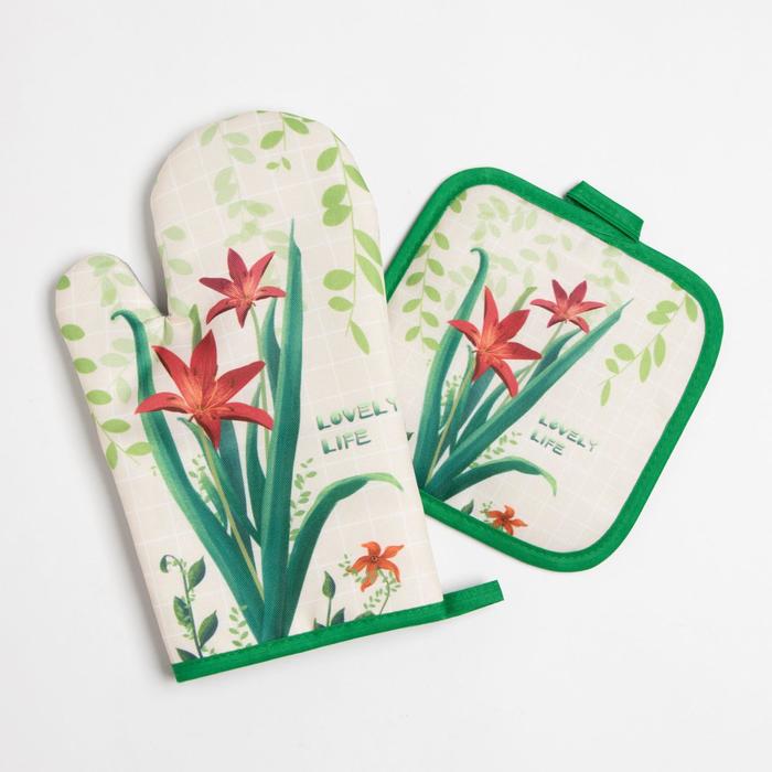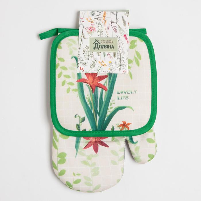 Кухонный набор Доляна «Lovely life»: прихватка 17х17 см, варежка 26х16 см, 100% п/э