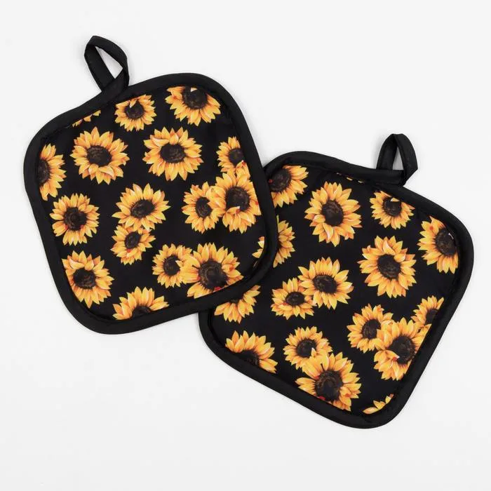 Кухонный набор Доляна «Подсолнухи», прихватка 17×17 см - 2 шт.,100% п/э