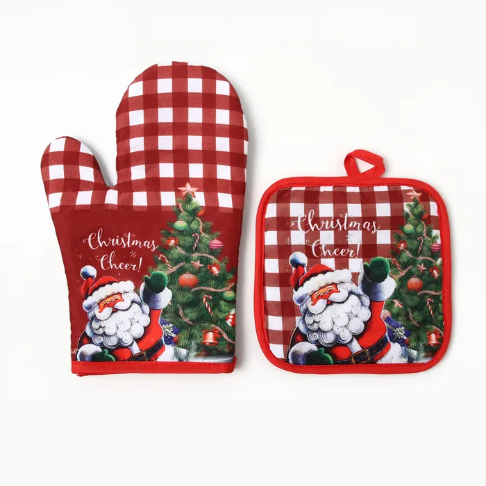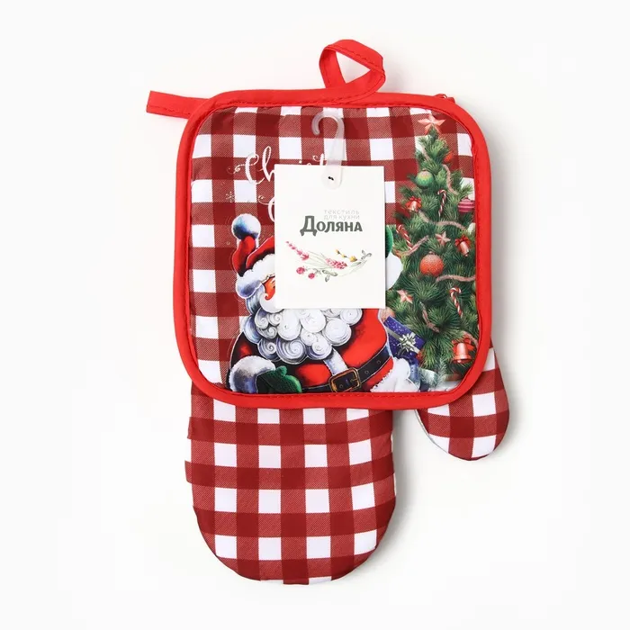Кухонный набор «Доляна. Рождество», прихватка 17×17 см, варежка-прихватка 26×16 см,100% п/э — Характеристики
