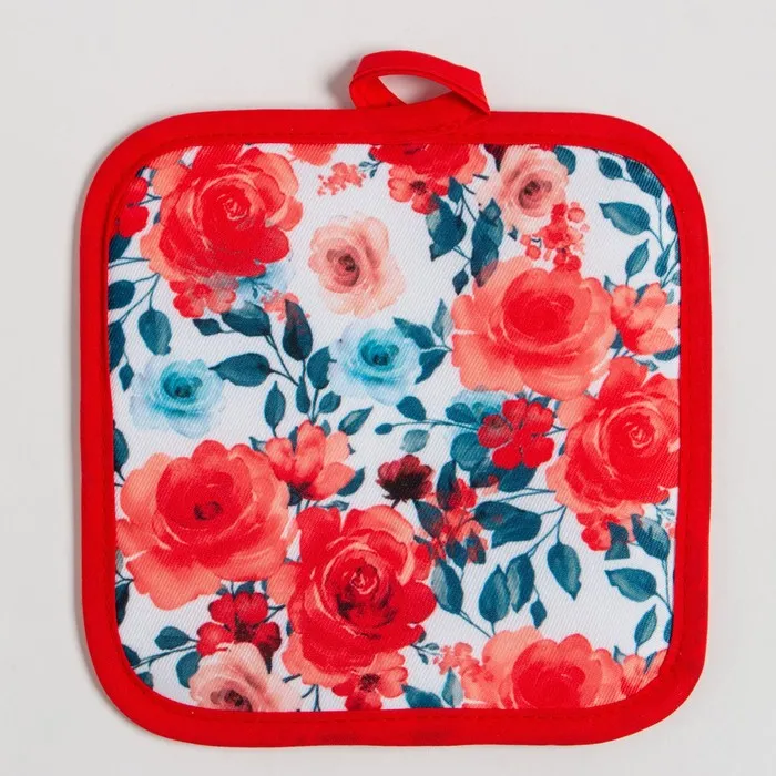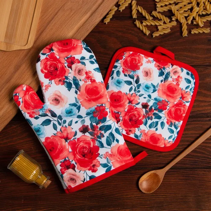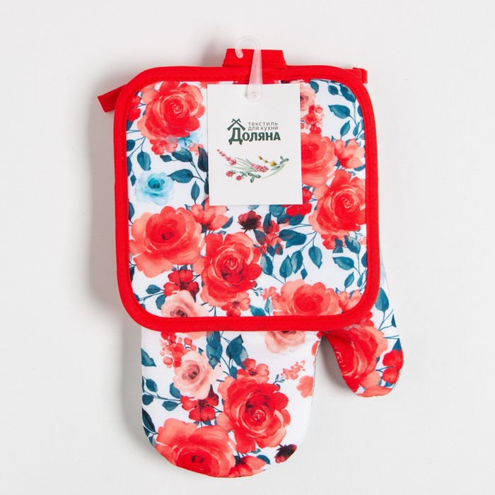 Кухонный набор Доляна "Розы" прихватка 17х17 см, варежка 25х16 см, 100% п/э — Характеристики