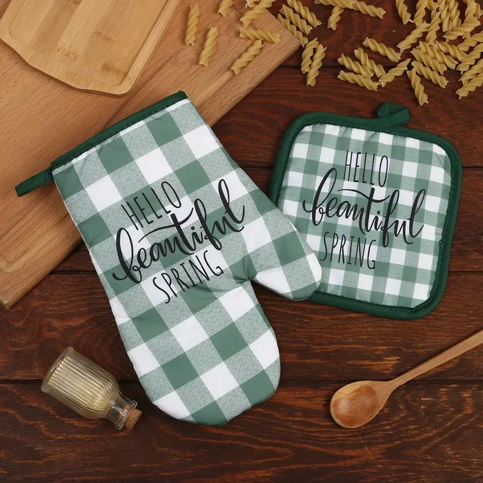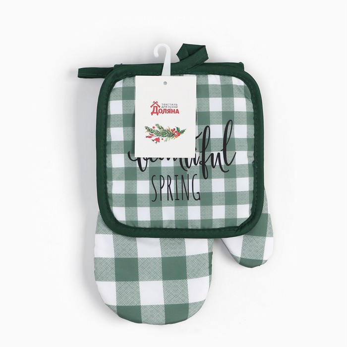 Кухонный набор «Доляна» Spring: прихватка 17×17 см, варежка-прихватка 26×16 см,100% п/э — Характеристики