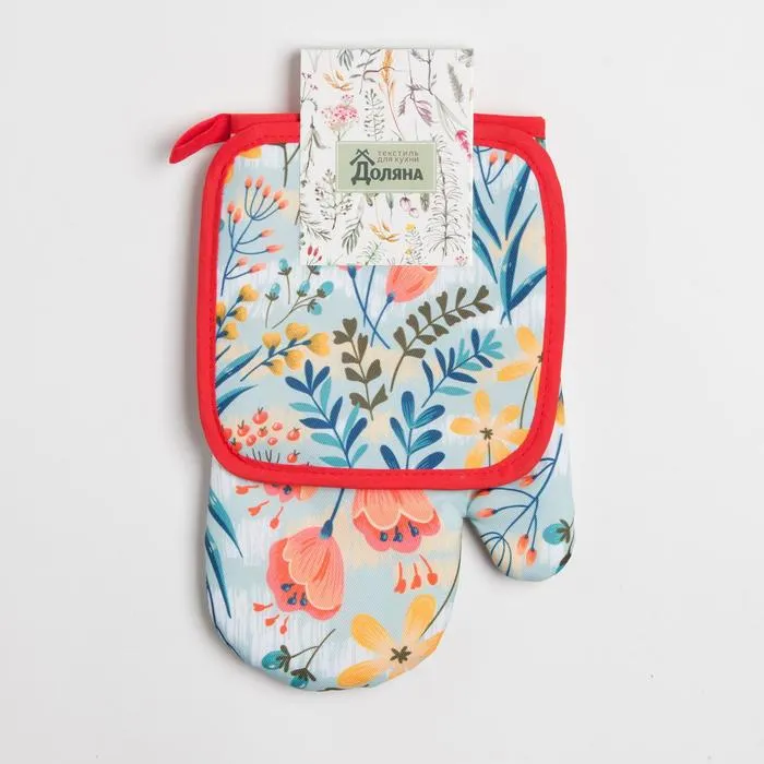 Кухонный набор Доляна «Тюльпаны», прихватка 17*17 см, рукавица 26*16 см,100% п/э — Характеристики