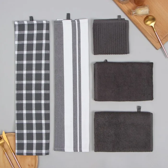 Кухонный набор Этель Grey: полотенце - 4 шт., салфетка 30×30 см, 100% хлопок — Характеристики