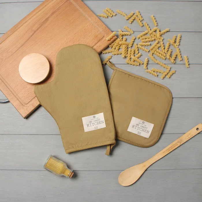 Кухонный набор «Этель» Kitchen, коричневый, варежка-прихватка 20×28 см, прихватка19×19 см,100% хлопок — Характеристики