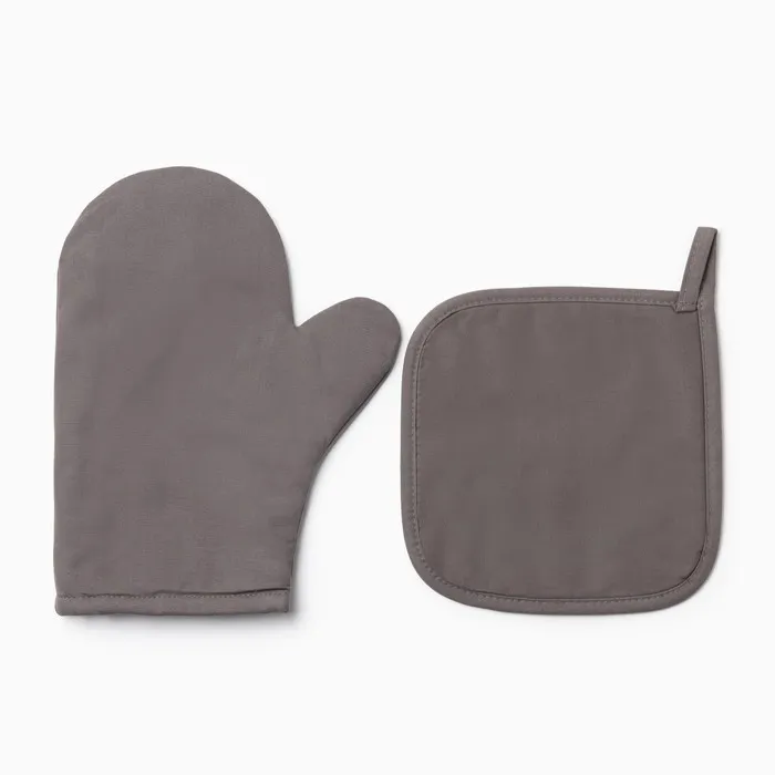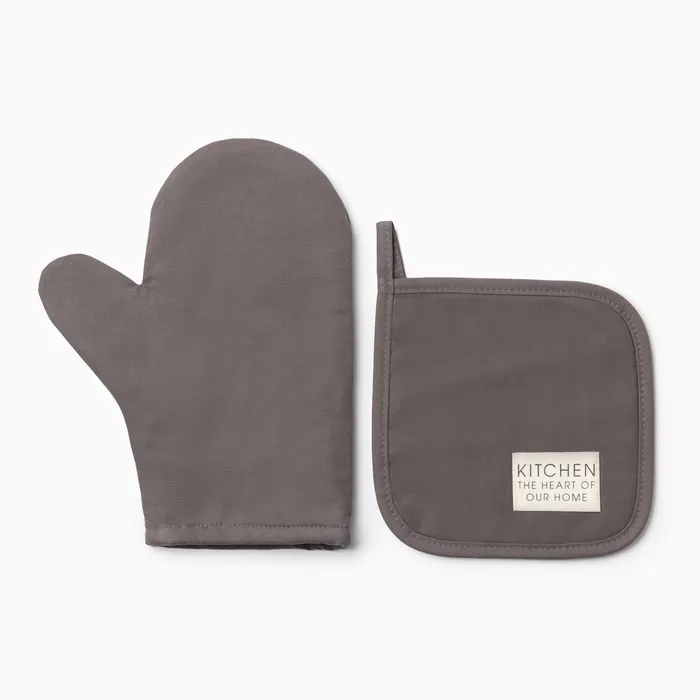 Кухонный набор Этель Kitchen, цвет серый, варежка-прихватка 18х29 см, прихватка 19х19 см — Характеристики