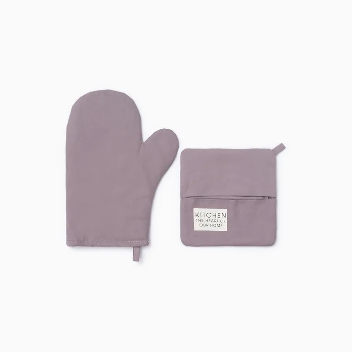 Кухонный набор Этель Kitchen, цвет сиреневый, варежка-прихватка 18х29 см, прихватка 19х19 см — Характеристики