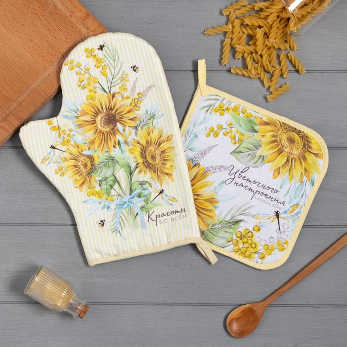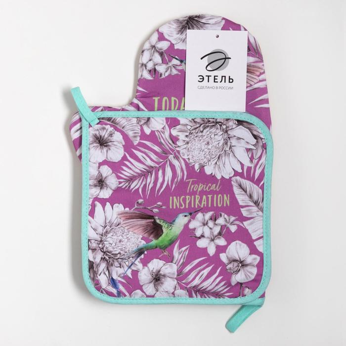 Кухонный набор Этель "Tropical": варежка-прихватка 20х28 см, прихватка 19х19 см, 100% хлопок — Характеристики