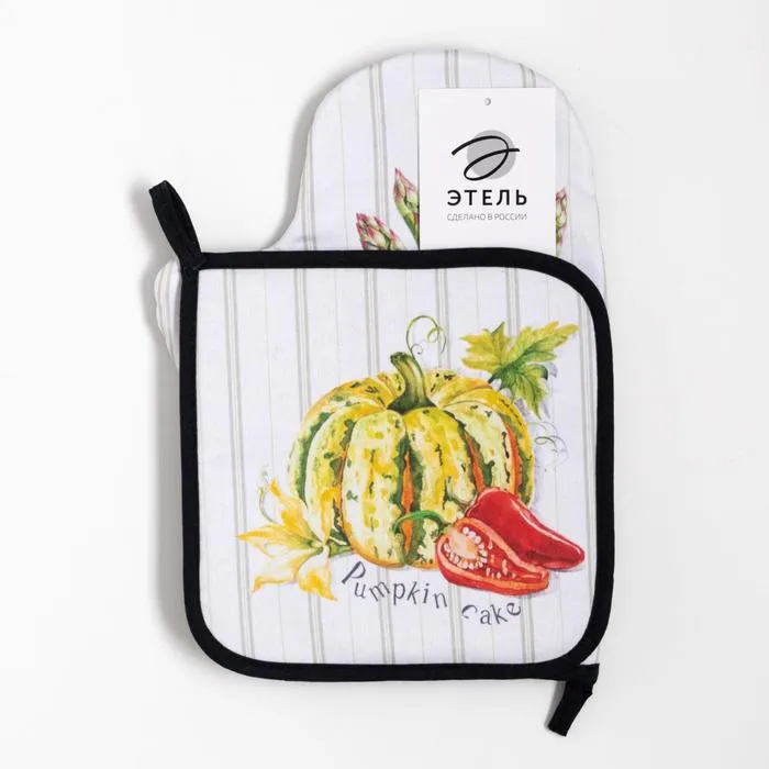 Кухонный набор Этель "Vegetable": варежка-прихватка 20х28 см, прихватка 19х19 см, 100% хлопок — Характеристики