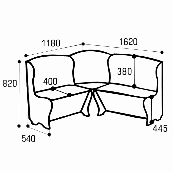 Кухонный уголок КУ-19, 1620 х 1180 х 920, дуб вотан — Характеристики