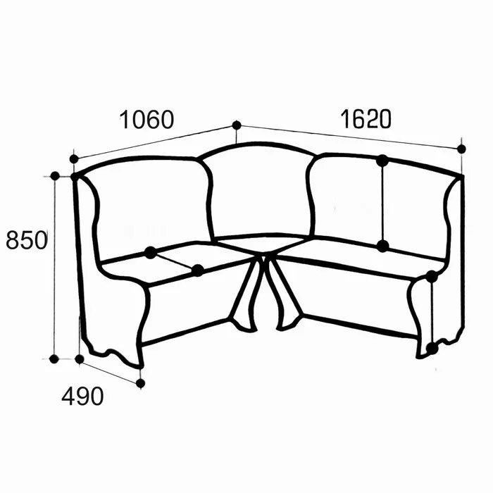 - Глубина дивана: 1060 мм.