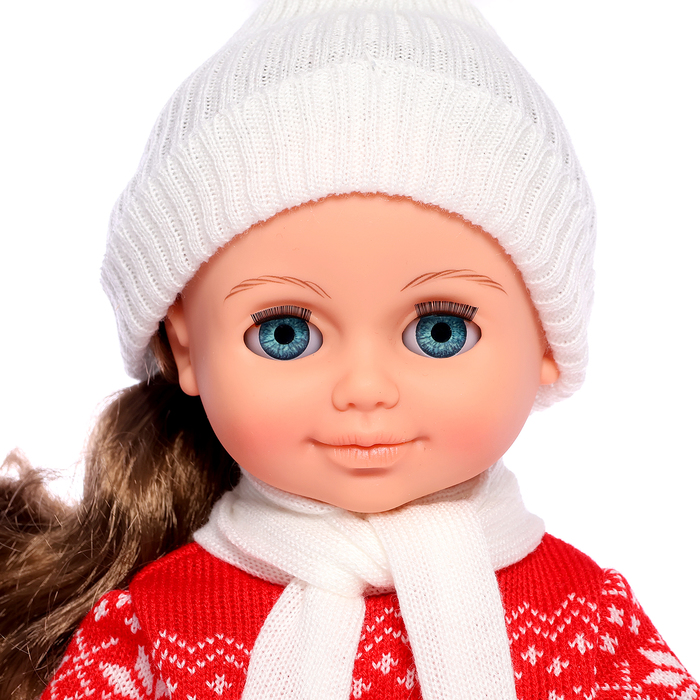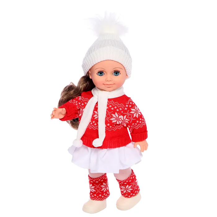 В комплект входит стильная одежда, которая включает в себя свитер, юбку в складку из плательно-костюмной ткани, модный шарф с помпонами, роскошные гетры с жаккардовым переплетением, вязаную шапку с помпоном из искусственного меха, а также колготки и кроссовки. Эти элементы наряда помогут создать стильный и модный образ для куклы «Анна 21».
