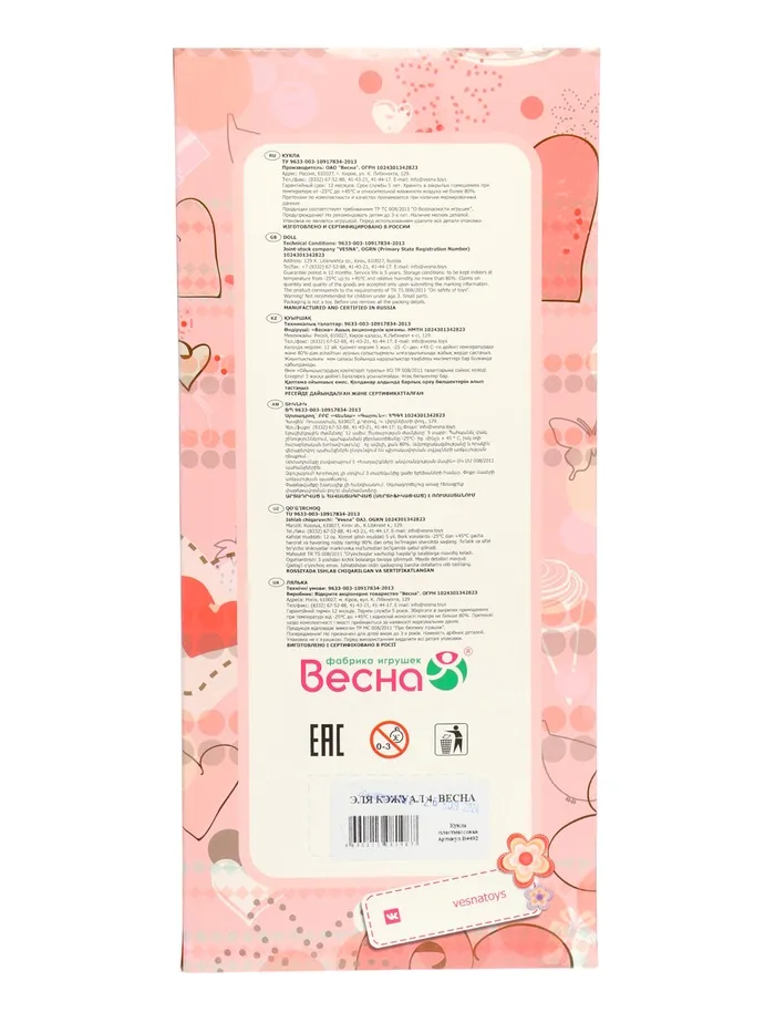 - Рост куклы — 30 см.