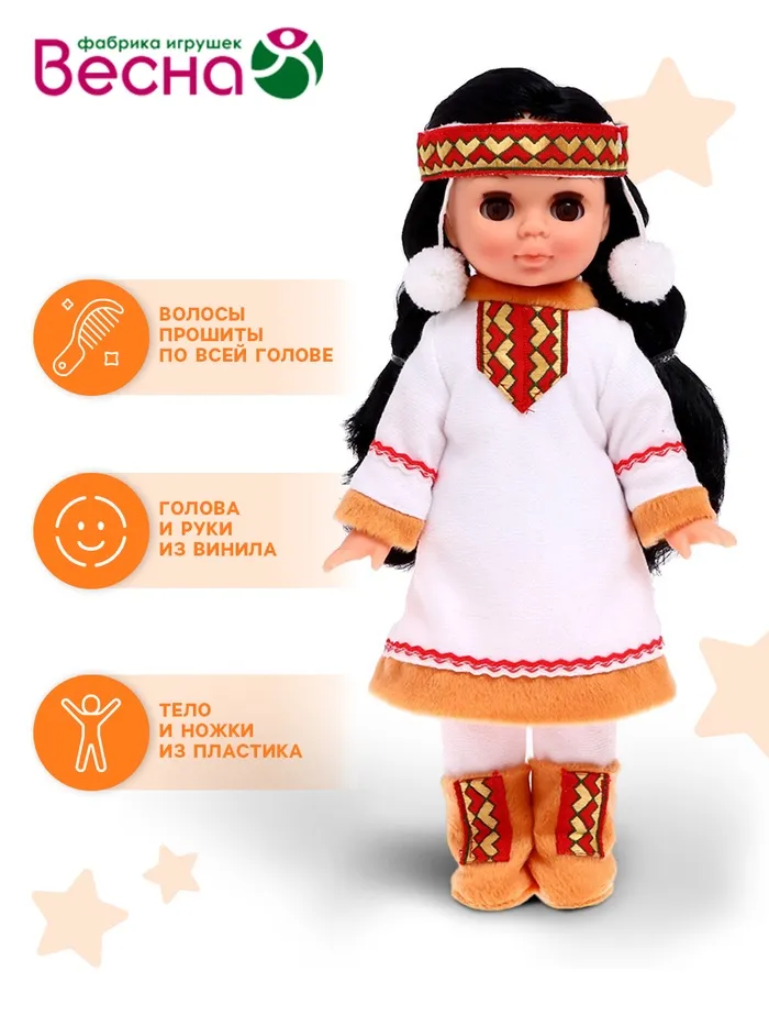 Кукла «Эля» в костюме народов Севера разнообразит сюжетно-ролевую игру и познакомит ребёнка с национальными традициями северного народа. С ней игры будут весёлыми и познавательными!