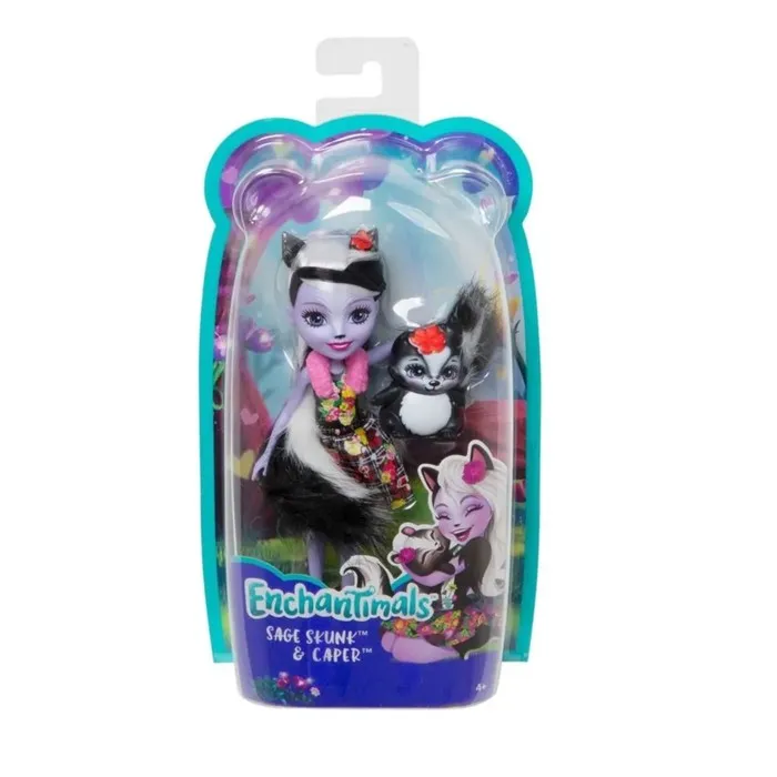 Кукла из серии «Enchantimals» — это яркий персонаж Сейдж Скунси с питомцем Капер, созданные для увлекательных сюжетно-ролевых игр. Вместе они открывают двери в фантастический мир магии, дружбы и приключений.