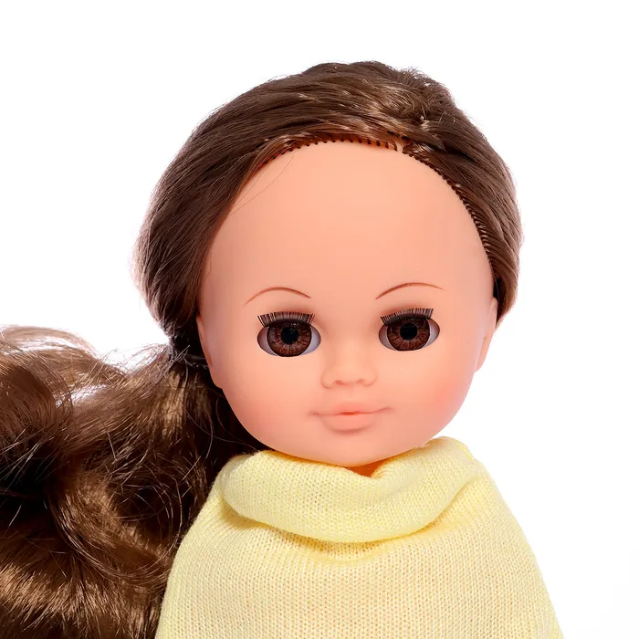 - Волосы из качественного нейлона прошиты по всей голове, поэтому очень похожи на настоящие. Можно менять образ куклы и завивать, расчёсывать, укладывать их в разные причёски.