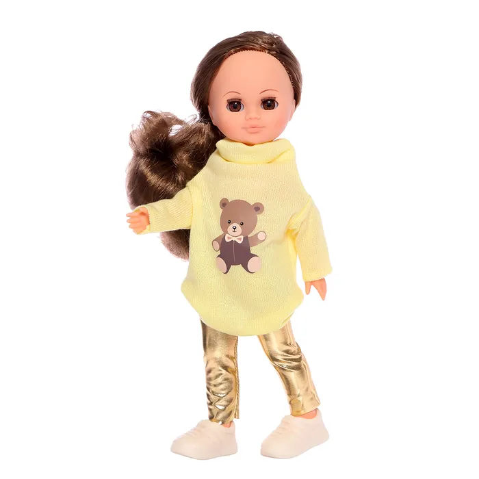 - Ручки и голова выполнены из эластичного, приятного на ощупь винила. Туловище и ноги — из пластмассы.