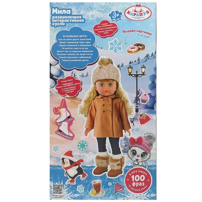 Кукла интерактивная «Мила», 40 см, говорит 100 фраз, песни Шаинского, 3 аксессуара — Характеристики