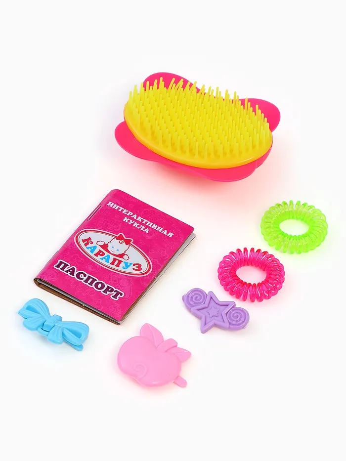 - Длинные красивые волосы можно укладывать в разные причёски. В комплекте есть расчёска, заколочки и резиночки для создания новых образов.
