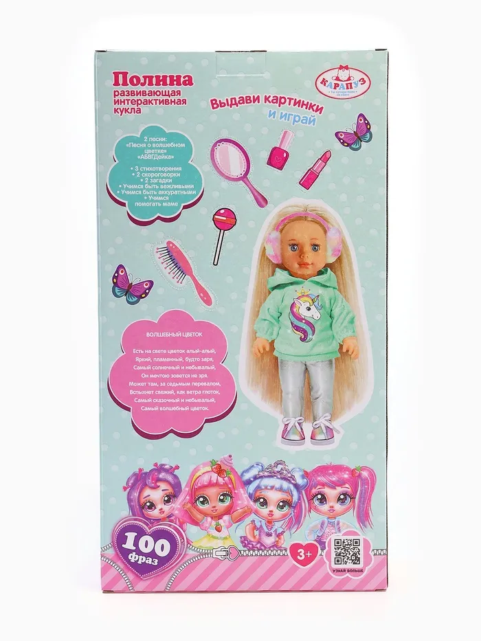 Кукла интерактивная «Полина», 40 см, 2 песни, стихи, 100 фраз, 3 аксессуара — Характеристики