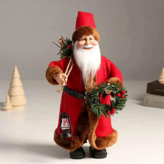 Кукла интерьерная "Дед Мороз с подарками, веночком и фонариком" 37 см — Характеристики