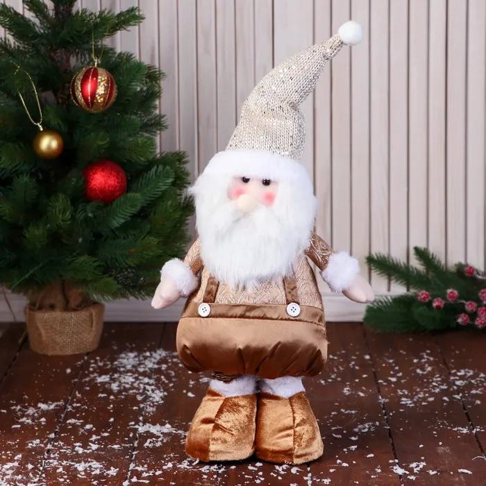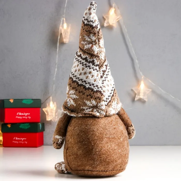 Кукла интерьерная "Дед Мороз в бежевом колпаке с узорами" 28х13х9 см — Характеристики