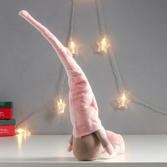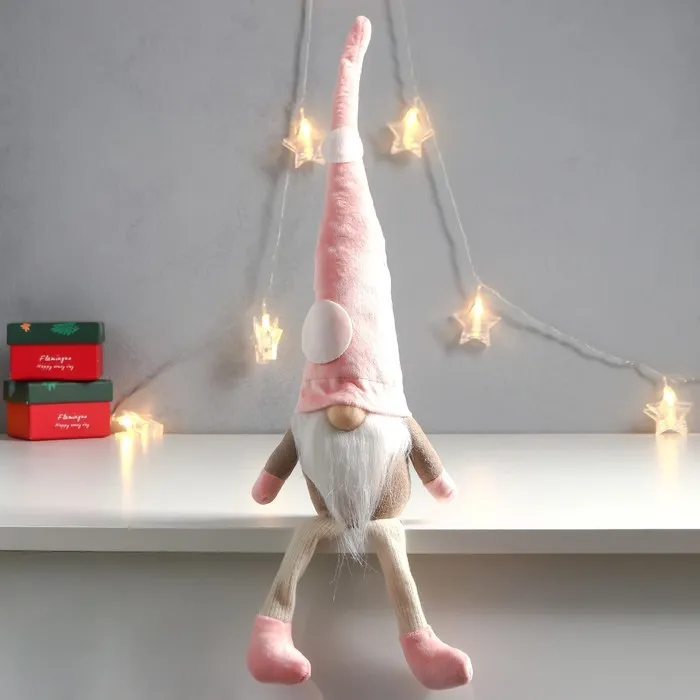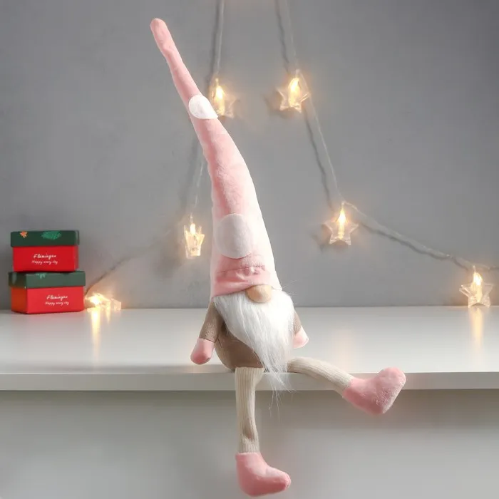 Кукла интерьерная "Дед Мороз в розовом колпаке с кружочками" длинные ножки 56х13х9 см — Характеристики